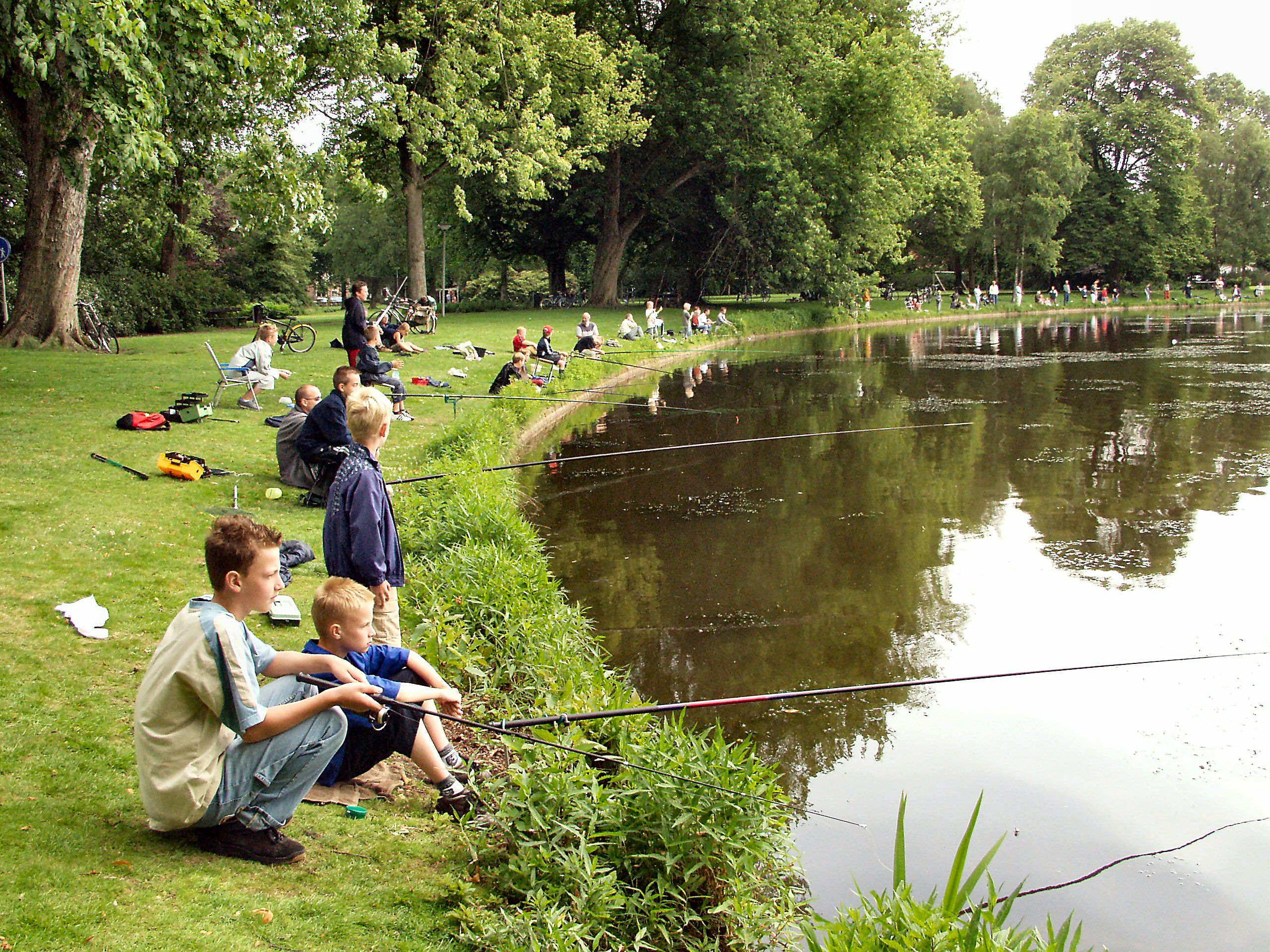 Het echte vissen begint met het maken van een vistuigje. De kinderen doen dat in kleine groepjes onder begeleiding van vrijwilligers van de lokale hengelsportvereniging. Daarna gaan ze op weg naar het viswater om het tuigje in de praktijk te testen: vissen dus! Maar eerst spreken we af dat we respect voor de natuur hebben, de vissen voorzichtig zullen behandelen en weer terugzetten en dat we geen rommel achterlaten.