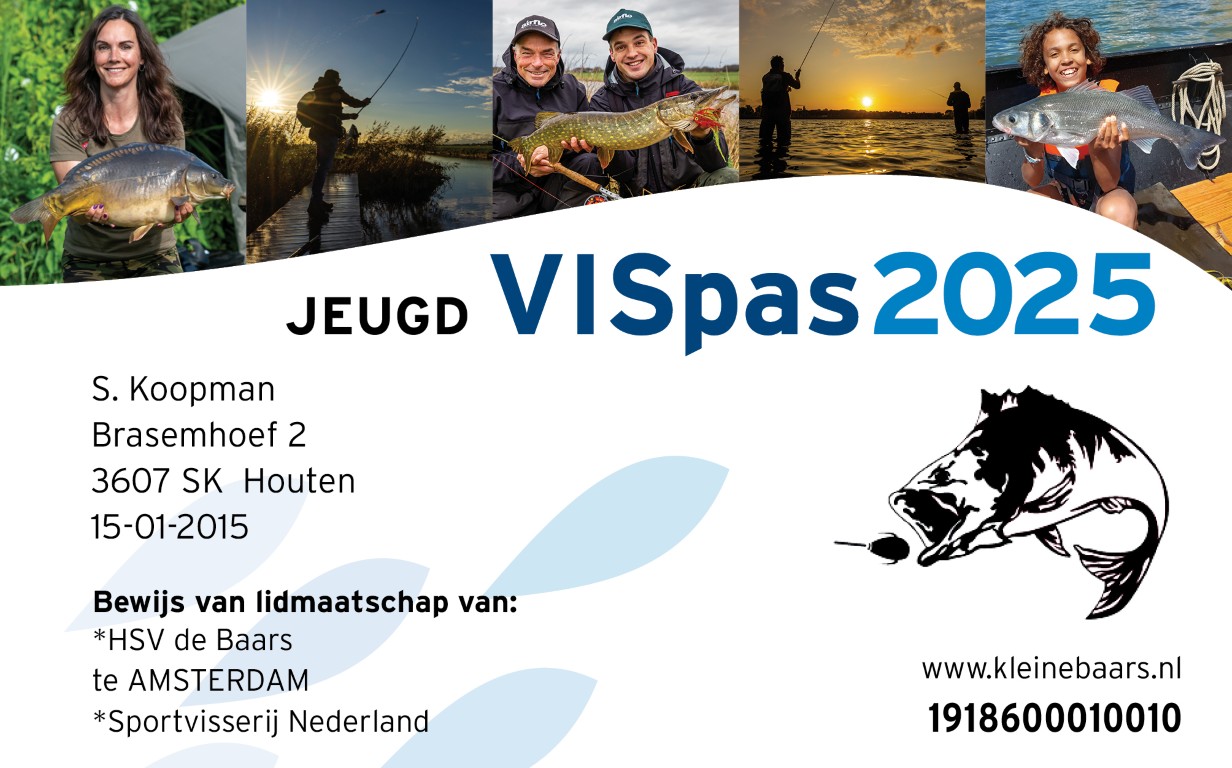 JeugdVISpas. Vis je alleen met één hengel en niet op roofvis in water van jouw vereniging, dan heb je aan een jeugdvergunning van je vereniging genoeg.